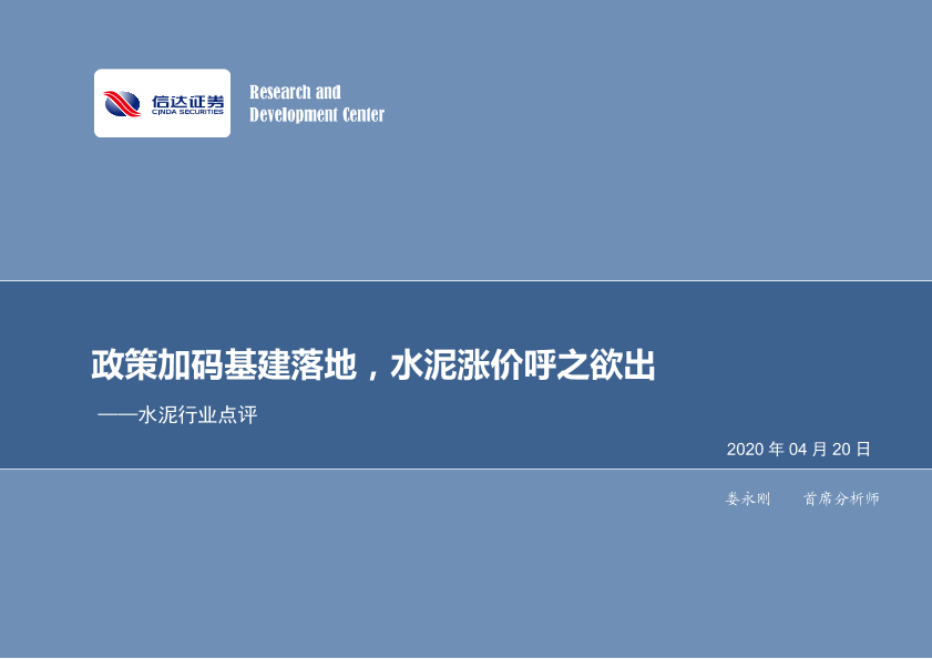【信达证券】【20200420】水泥行业点评:政策加码基建落地,水泥涨价呼之欲出-4页