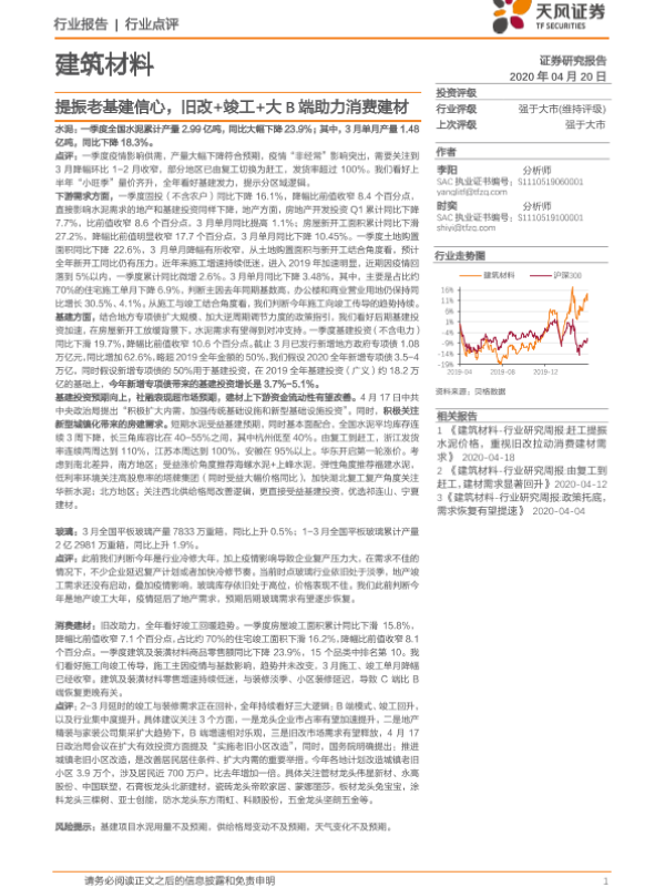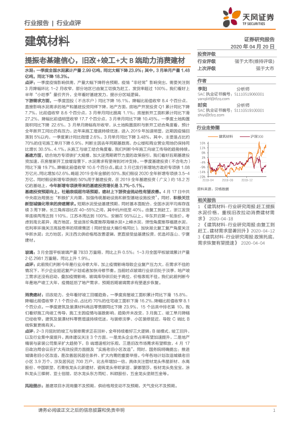 【天风证券】【20200420】建筑材料行业点评:提振老基建信心,旧改+竣工+大B端助力消费建材-6页
