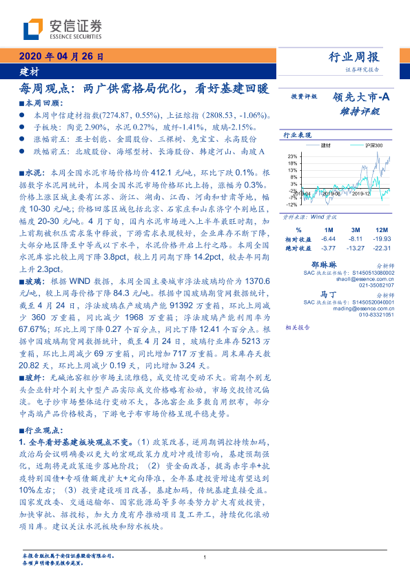 【安信证券】【20200426】建材每周观点:两广供需格局优化,看好基建回暖-18页