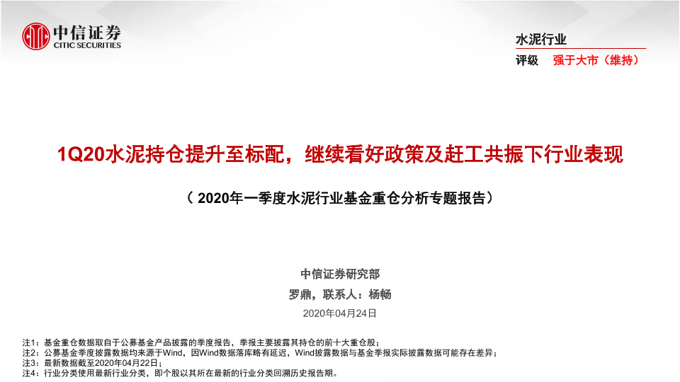 【中信证券】【20200424】2020年一季度水泥行业基金重仓分析专题报告-17页