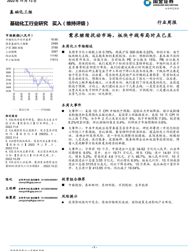【国金证券】【20221113】基础化工行业研究:需求继续扰动市场,板块中线布局时点已至-26页