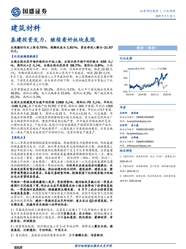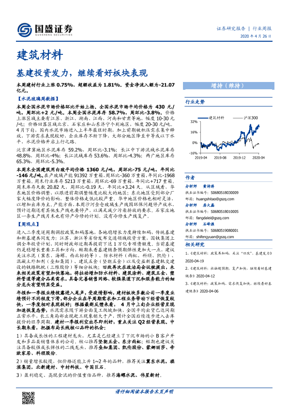 【国盛证券】【20200426】建筑材料行业周报:基建投资发力,继续看好板块表现-25页