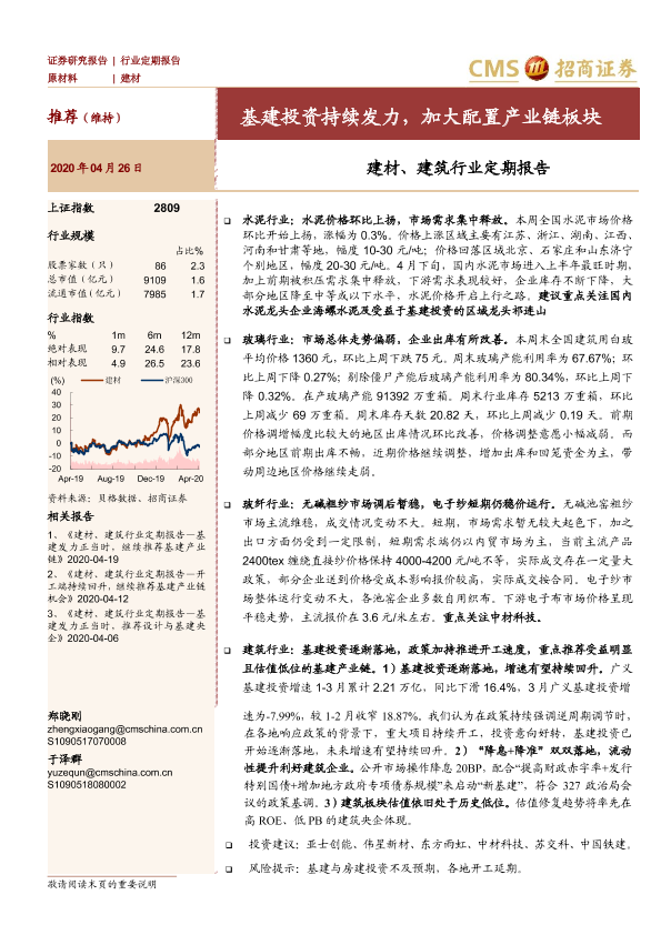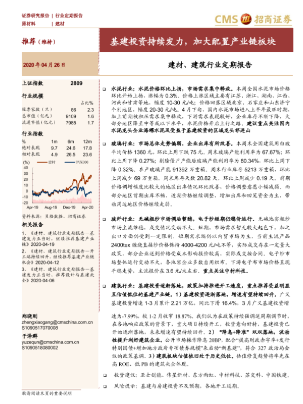 【海通证券】【20200426】建材、建筑行业定期报告:基建投资持续发力,加大配置产业链板块-37页
