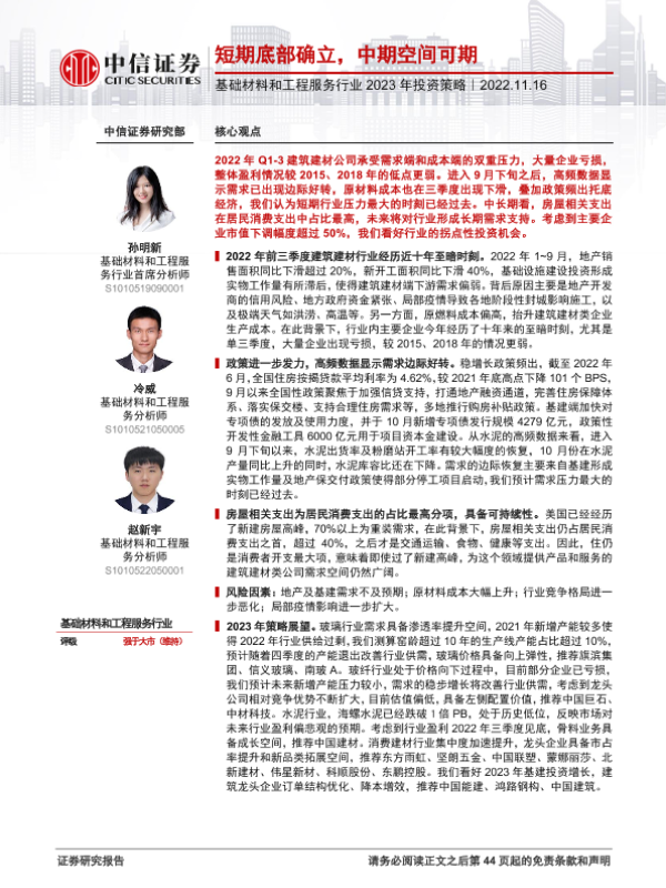 【中信证券】【20221116】基础材料和工程服务行业2023年投资策略:短期底部确立,中期空间可期-45页