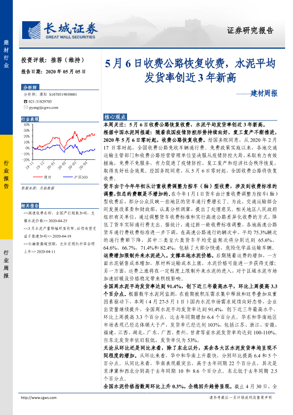 【长城证券】【20200505】5月6日收费公路恢复收费,水泥平均发货率创近3年新高-17页