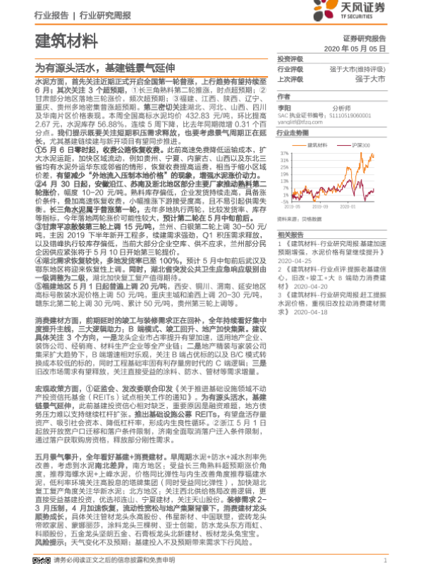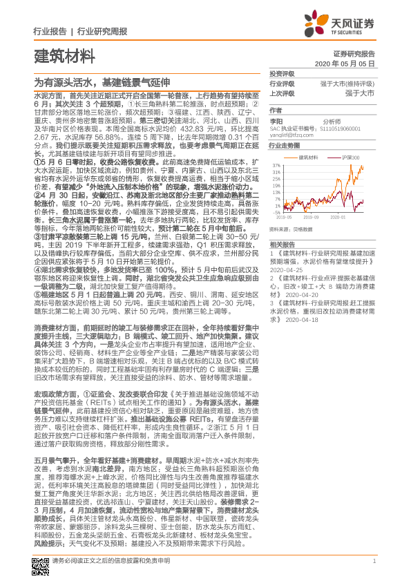 【天风证券】【20200505】建筑材料行业研究周报:为有源头活水,基建链景气延伸-10页
