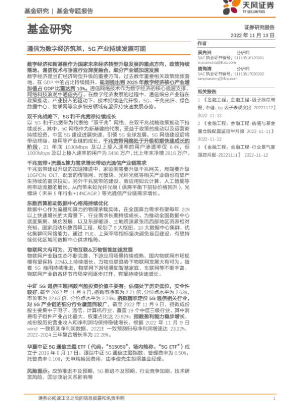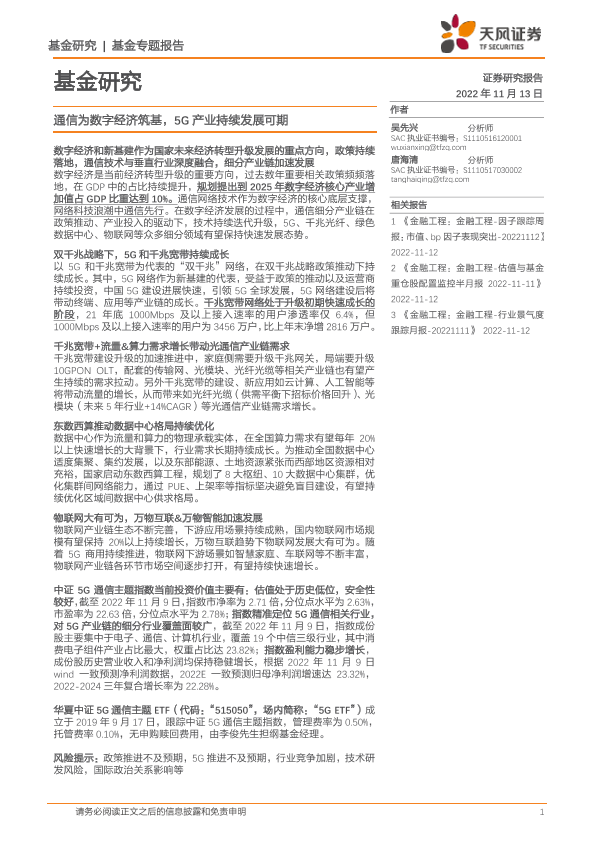 基金专题 数字经济 物联网 通信技术 5G通信