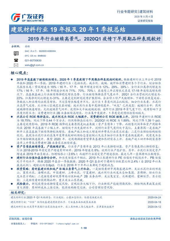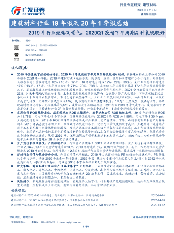 【广发证券】【20200504】建筑材料行业19年报及20年1季报总结-50页