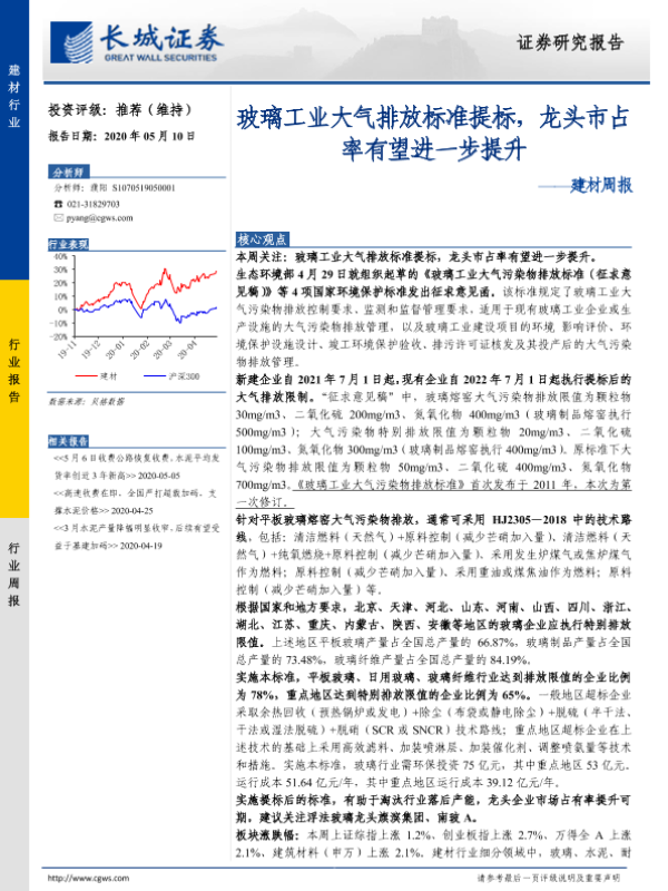 【长城证券】【20200510】玻璃工业大气排放标准提标,龙头市占率有望进一步提升-17页