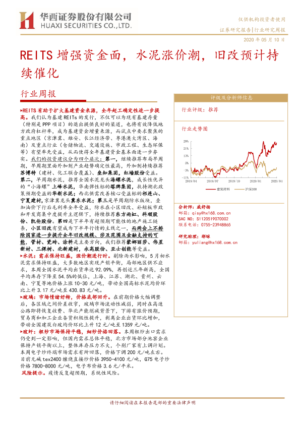【华西证券】【20200510】建材行业周报:REITS增强资金面,水泥涨价潮,旧改预计持续催化-13页