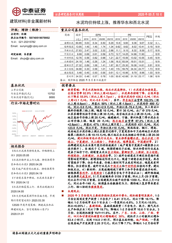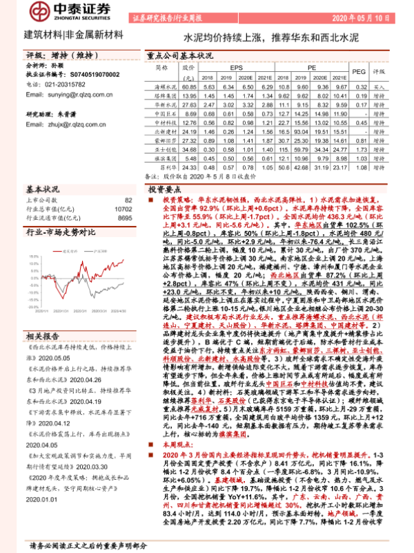 【中泰证券】【20200510】建筑材料行业周报:水泥均价持续上涨-26页