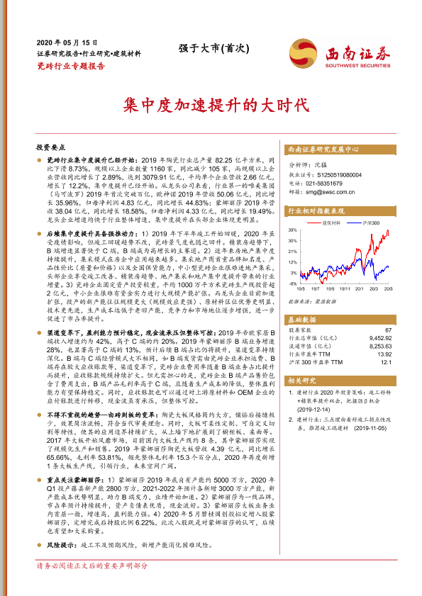 【西南证券】【20200515】瓷砖行业专题报告:集中度加速提升的大时代-15页