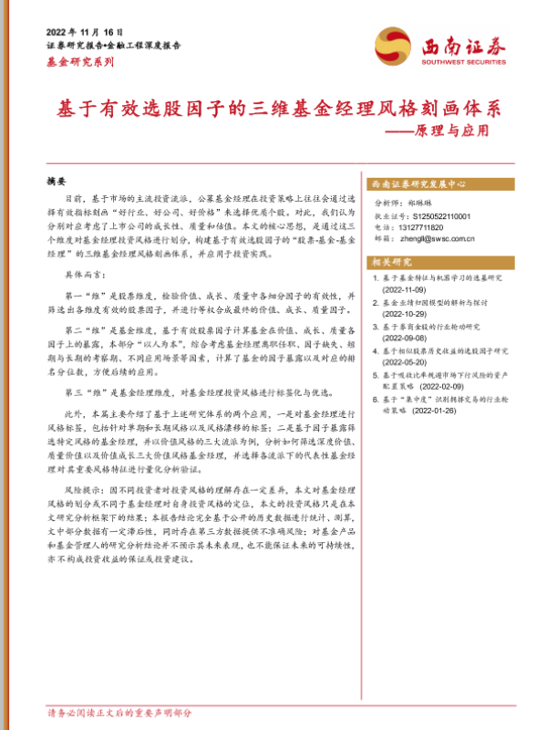 【西南证券】【20221116】基于有效选股因子的三维基金经理风格刻画体系——原理与应用-32页