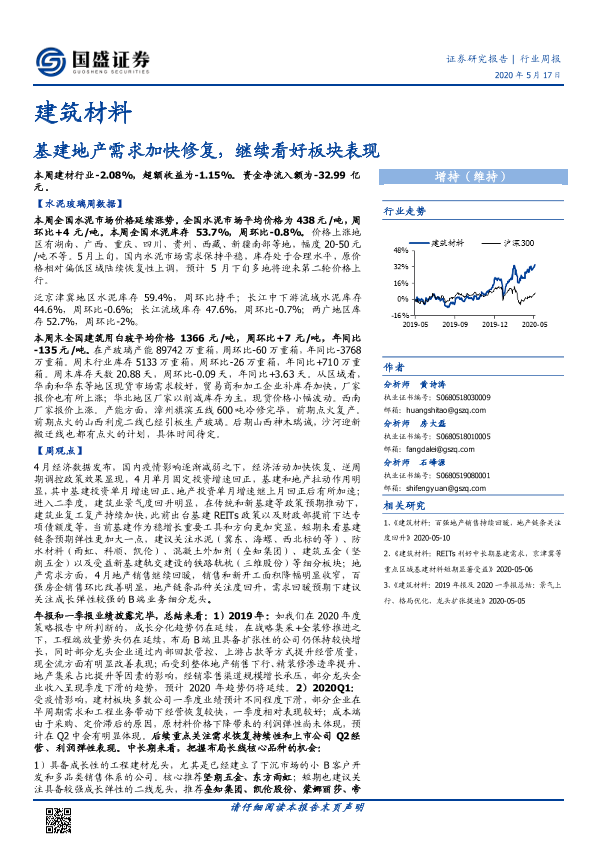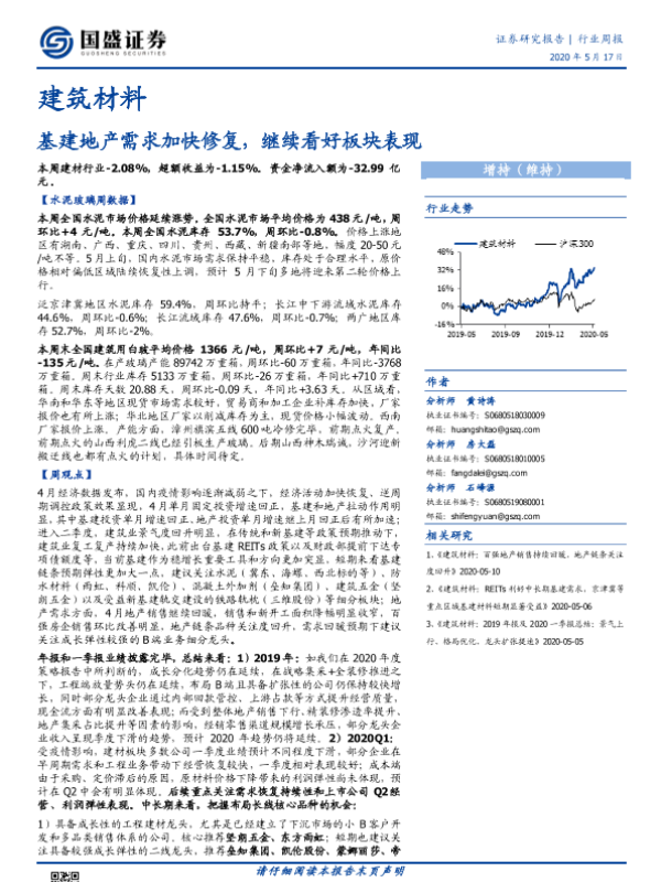 【国盛证券】【20200518】建筑材料行业周报:基建地产需求加快修复,继续看好板块表现-24页