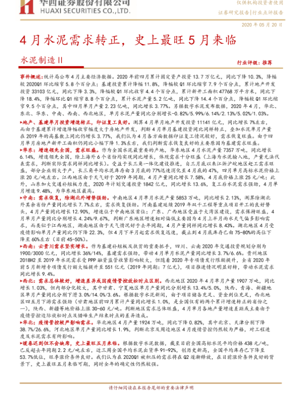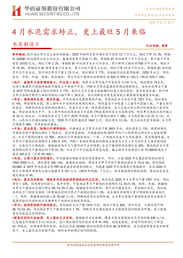 【华西证券】【20200520】4月水泥需求转正,史上最旺5月来临-4页