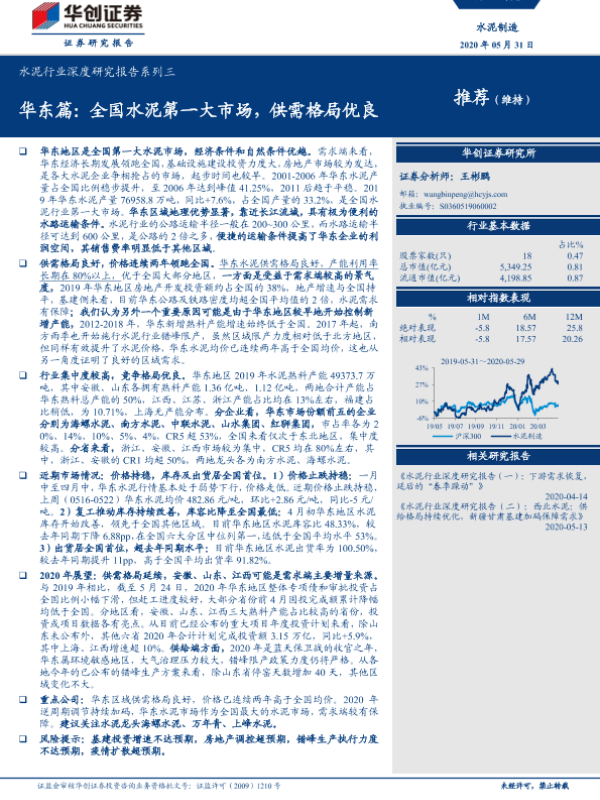 【华创证券】【20200531】水泥行业深度研究报告系列三:华东篇-22页