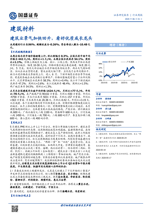 【国盛证券】【20200601】建筑材料行业周报:建筑业景气加快回升,看好优质成长龙头-24页