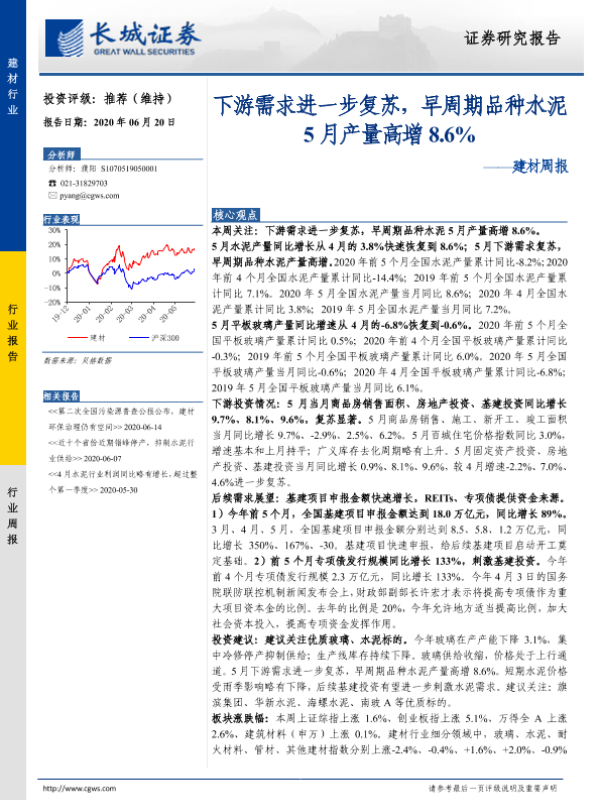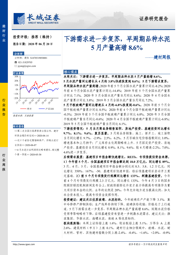 【长城证券】【20200620】建材周报:下游需求进一步复苏,早周期品种水泥5月产量高增8.6%-17页