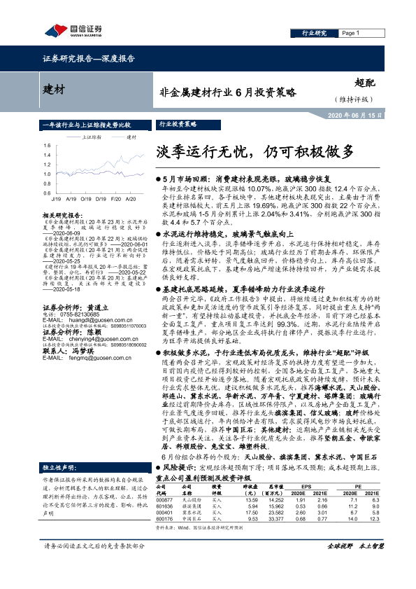【国信证券】【20200615】非金属建材行业6月投资策略:淡季运行无忧,仍可积极做多-22页