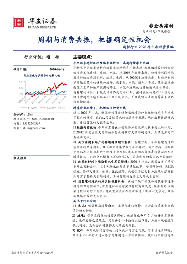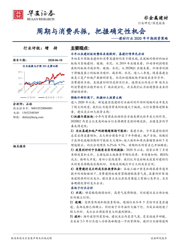 2020年中期 周期与消费 建材行业 投资策略 确定性机会