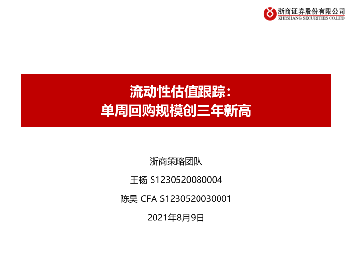 【浙商证券】【20210809】流动性估值跟踪:单周回购规模创三年新高-42页