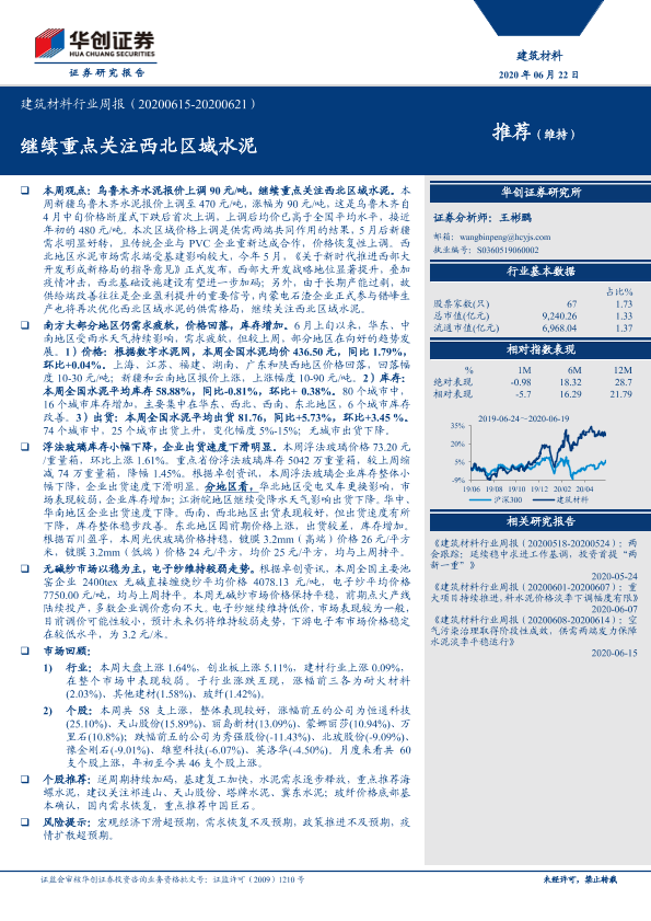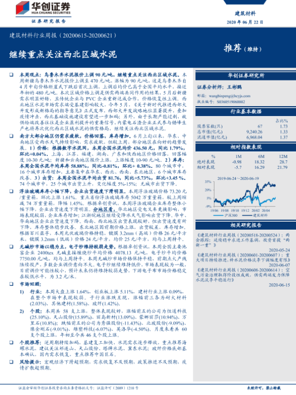 【华创证券】【20200622】建筑材料行业周报:继续重点关注西北区域水泥-16页
