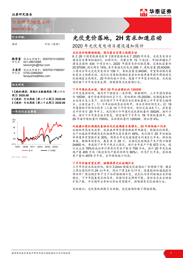 【华泰证券】【20200630】2020年光伏发电项目建设通知简评:光伏竞价落地,2H需求加速启动-5页