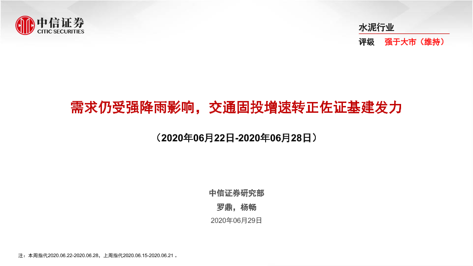 【中信证券】【20200629】水泥行业:需求仍受强降雨影响,交通固投增速转正佐证基建发力-39页