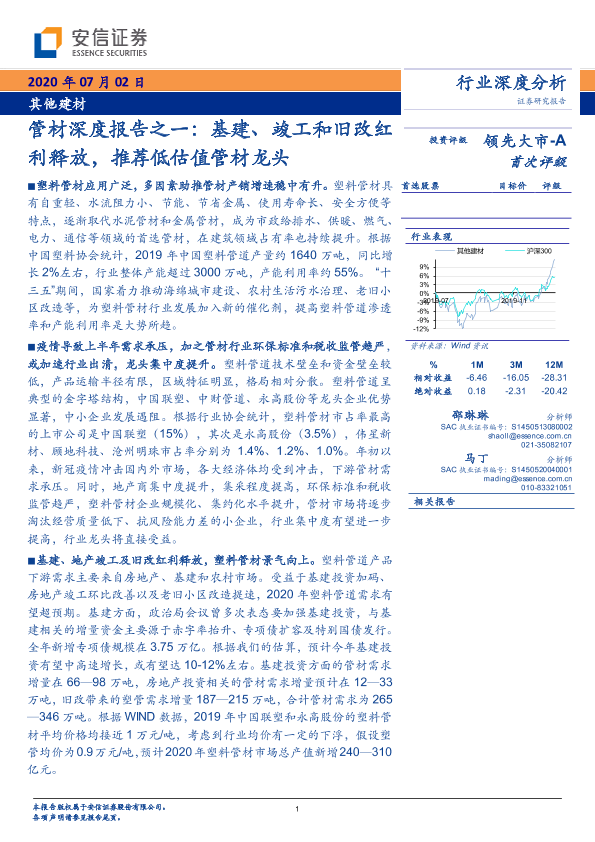 【安信证券】【20200702】管材深度报告之一:基建、竣工和旧改红利释放-38页