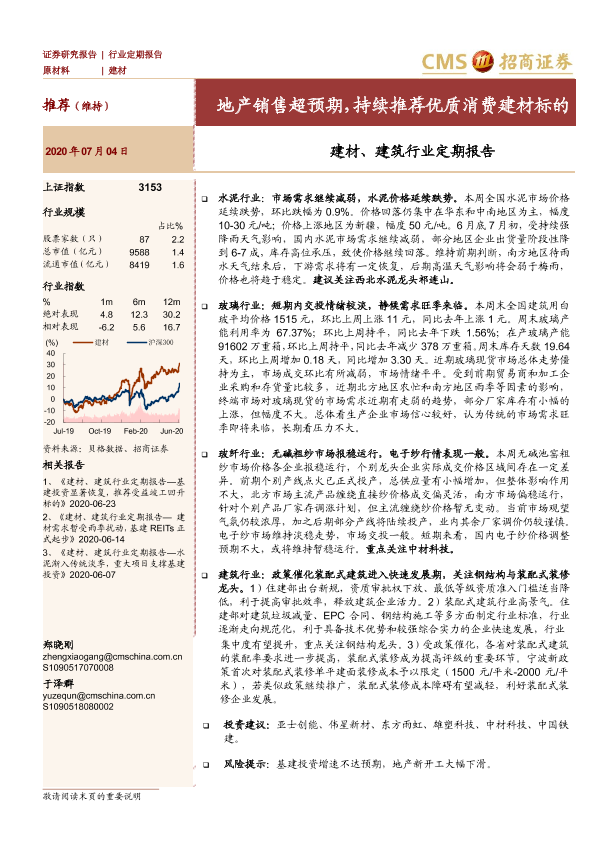 【海通证券】【20200704】建材、建筑行业定期报告:地产销售超预期,持续推荐优质消费建材标的-41页