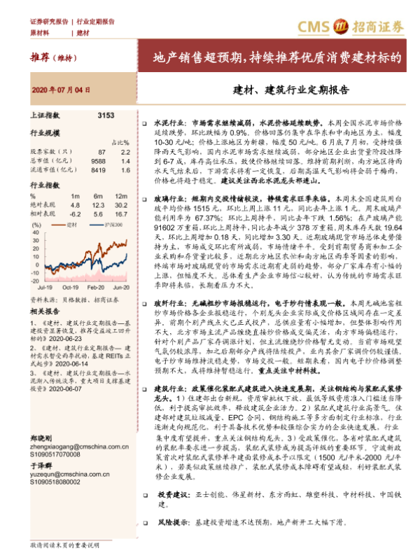 地产销售 建材行业 建筑行业 消费建材 装配式建筑