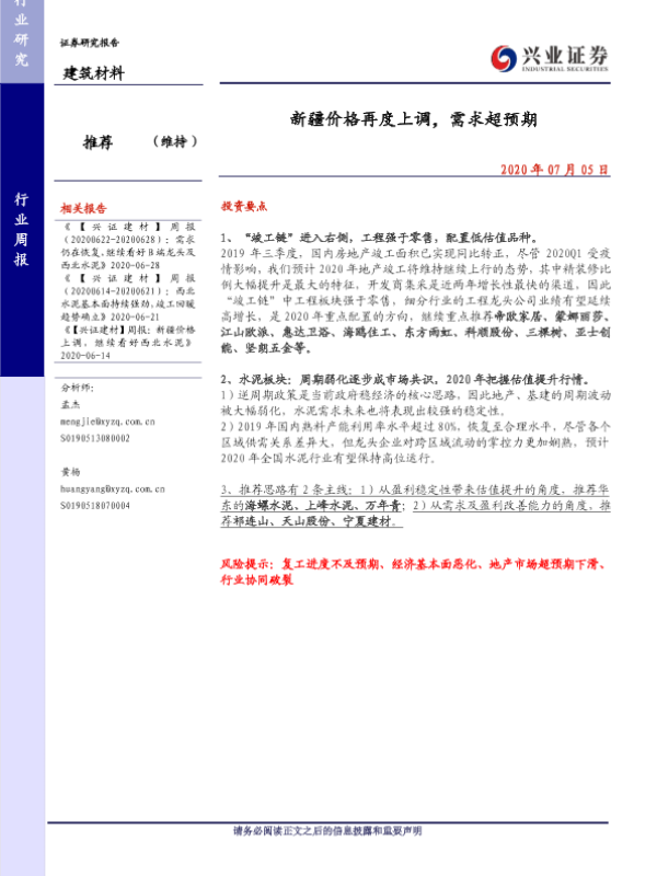 【兴业证券】【20200705】新疆价格再度上调,需求超预期-17页