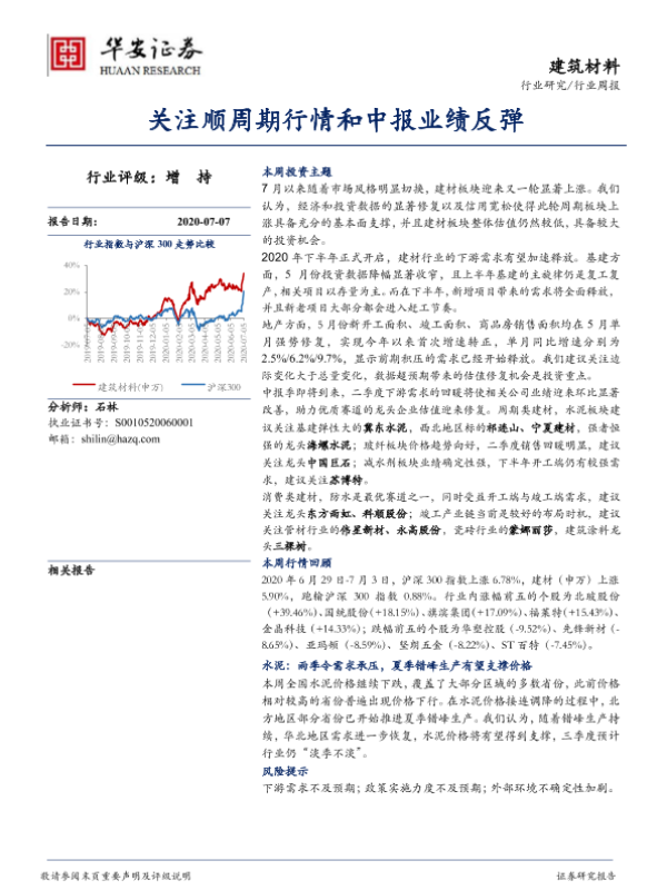【华安证券】【20200707】建筑材料行业周报:关注顺周期行情和中报业绩反弹-13页