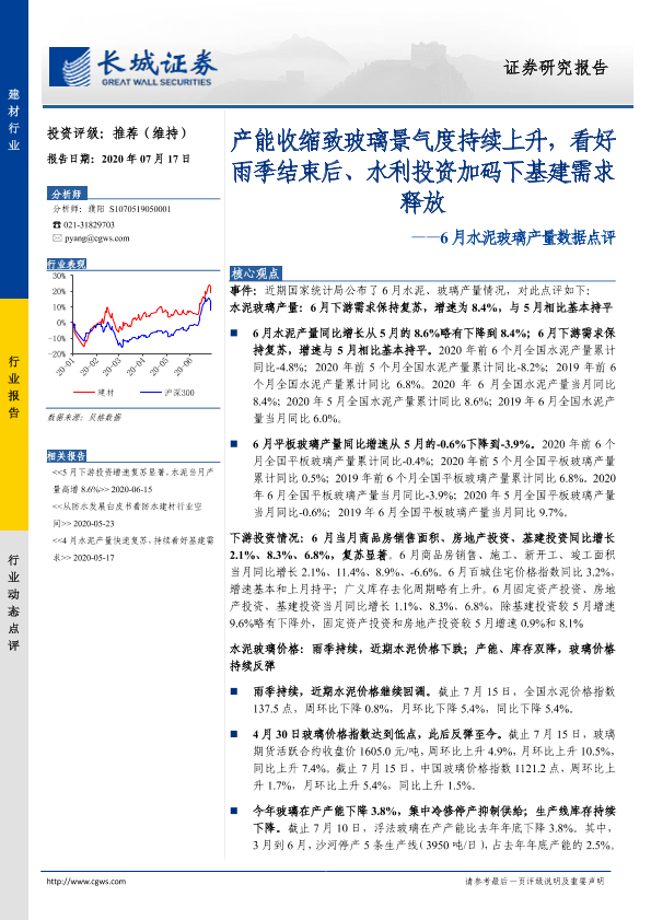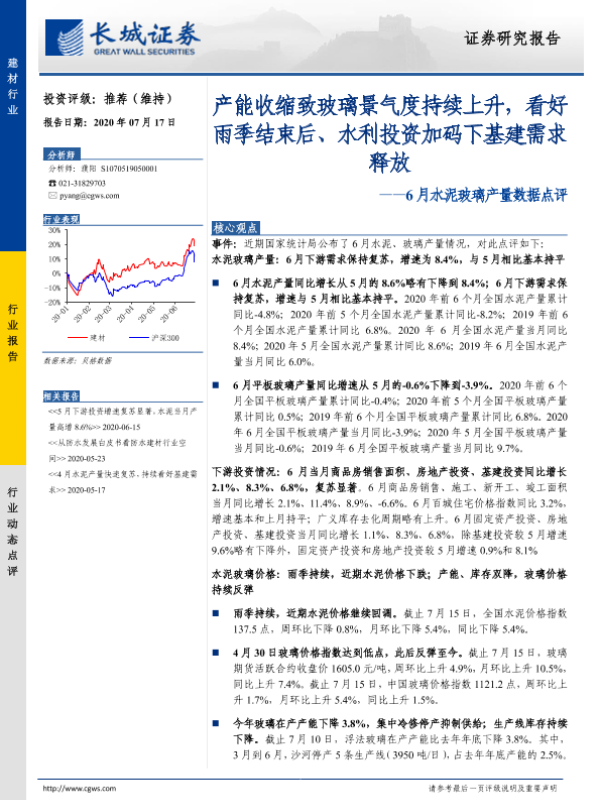 【长城证券】【20200717】6月水泥玻璃产量数据点评:产能收缩致玻璃景气度持续上升-14页