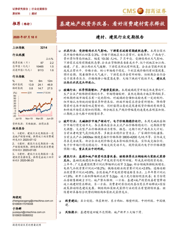 【海通证券】【20200718】基建地产投资齐改善,看好消费建材需求释放-44页