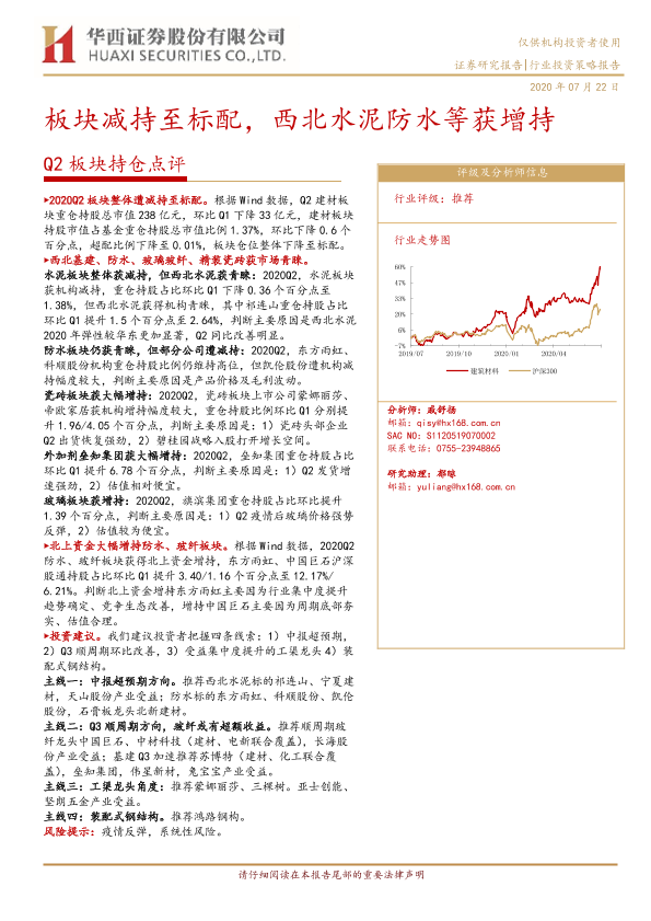 【华西证券】【20200722】建筑材料Q2板块持仓点评:板块减持至标配,西北水泥防水等获增持-9页