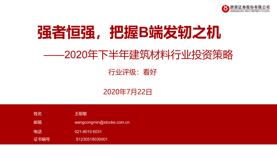 【浙商证券】【20200722】2020年下半年建筑材料行业投资策略:强者恒强,把握B端发轫之机-31页