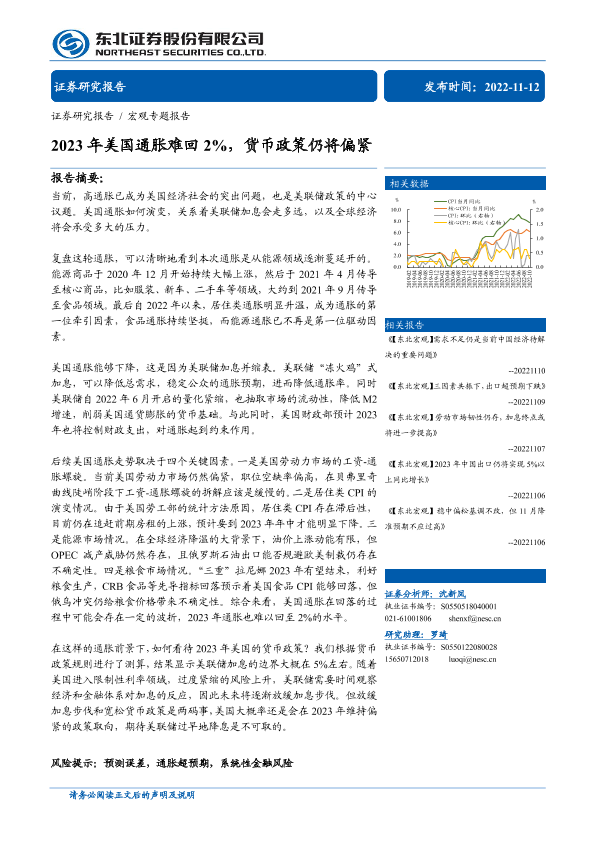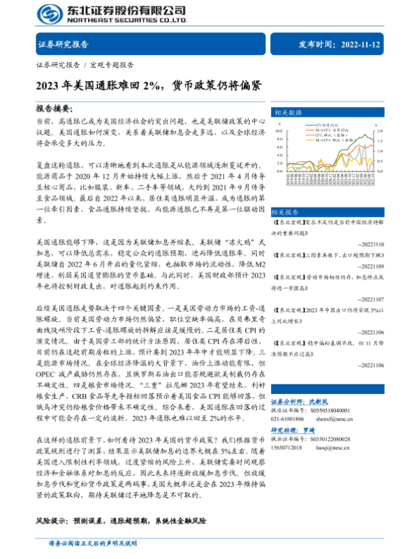【东北证券】【20221112】2023年美国通胀难回2%,货币政策仍将偏紧-31页