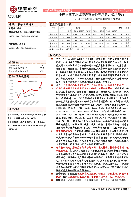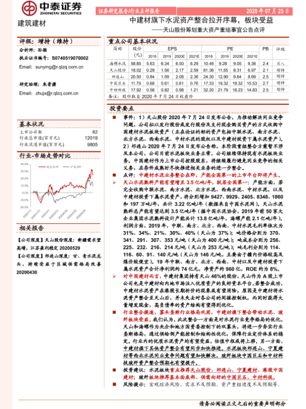 【中泰证券】【20200725】天山股份筹划重大资产重组事宜公告点评:中建材旗下水泥资产整合拉开序幕,板块受益-4页
