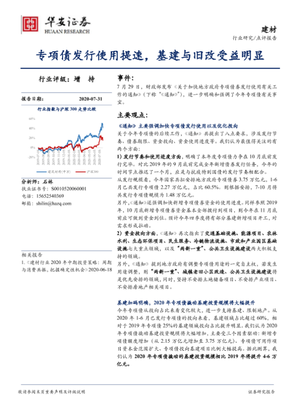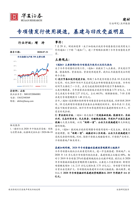 【华安证券】【20200731】建材:专项债发行使用提速,基建与旧改受益明显-8页