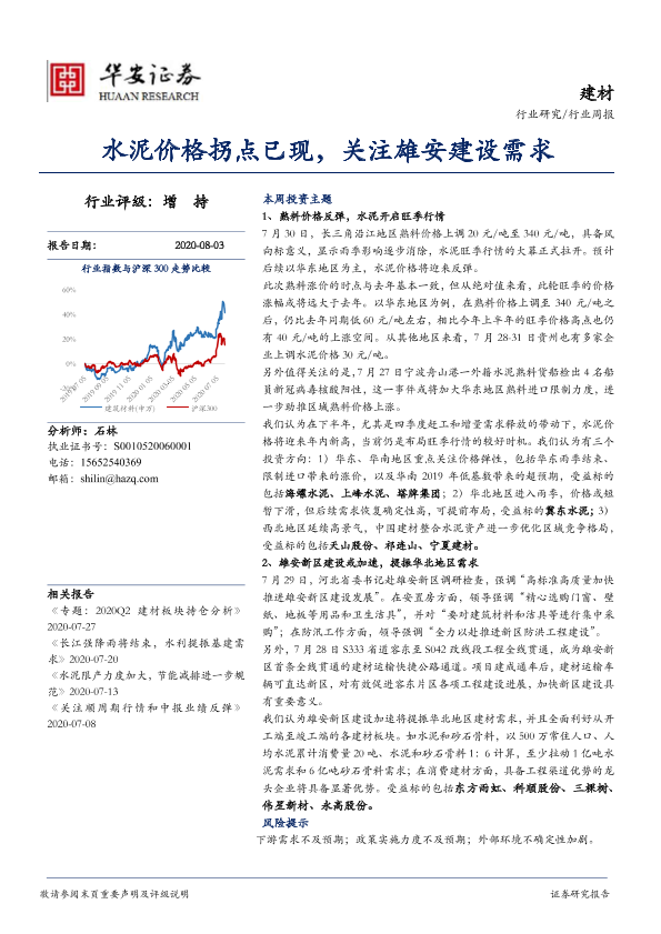 【华安证券】【20200803】建材行业周报:水泥价格拐点已现,关注雄安建设需求-14页