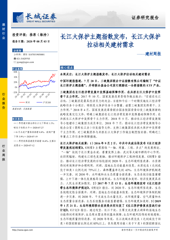 【长城证券】【20200803】建材周报:长江大保护主题指数发布,长江大保护拉动相关建材需求-19页