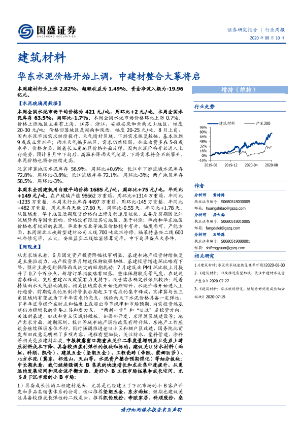 【国盛证券】【20200810】建筑材料行业周报:华东水泥价格开始上调,中建材整合大幕将启-26页
