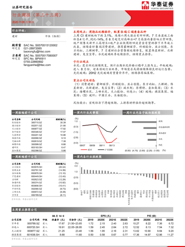 【华泰证券】【20200816】建材行业周报(第三十三周)-15页