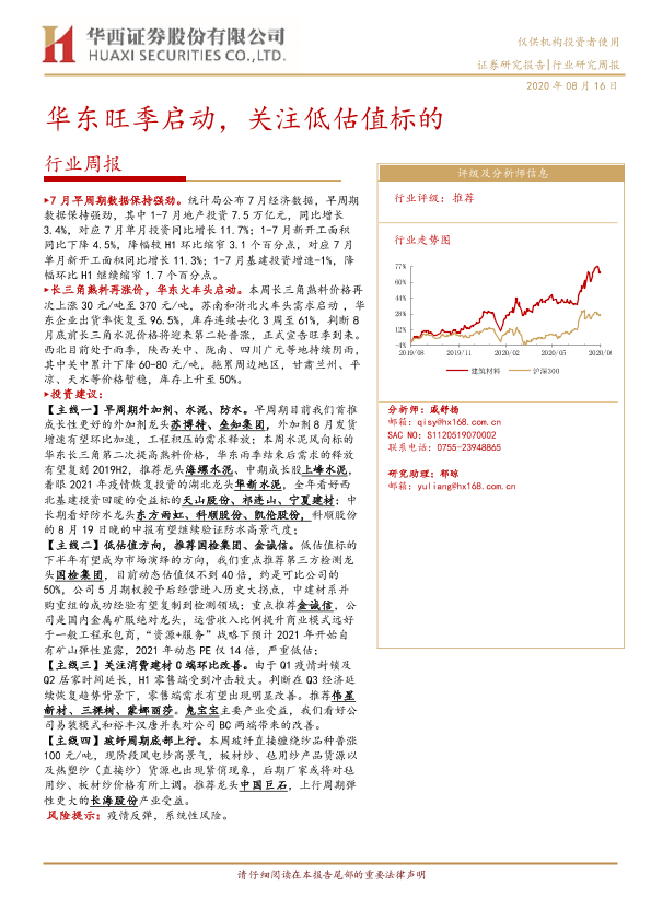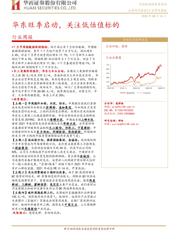 【华西证券】【20200816】建筑材料行业周报:华东旺季启动,关注低估值标的-14页