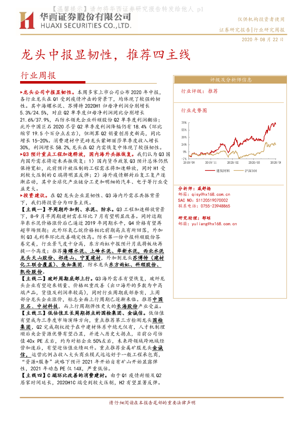 【华西证券】【20200822】建筑材料行业周报:龙头中报显韧性,推荐四主线-14页
