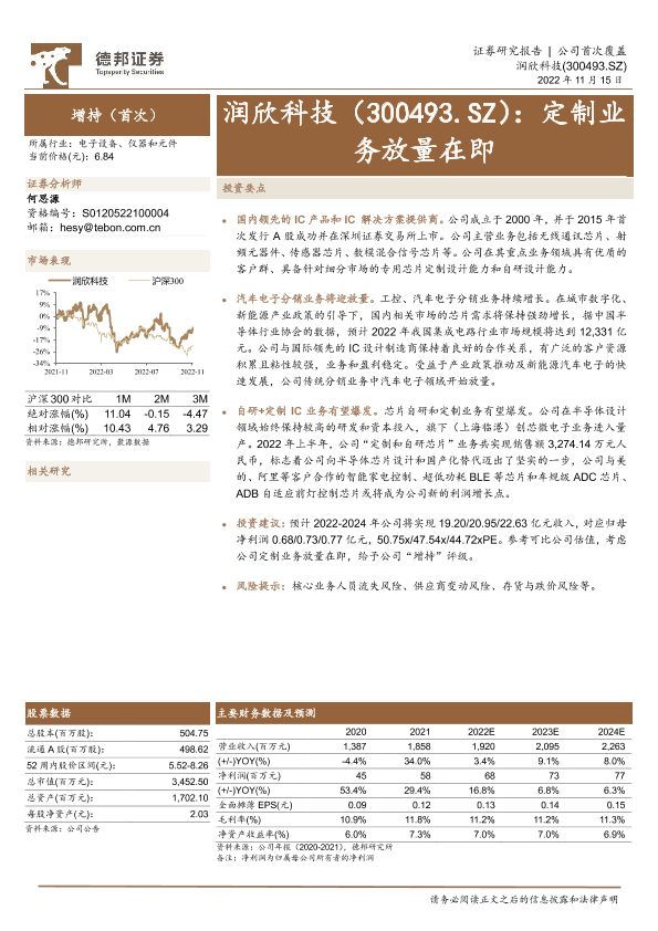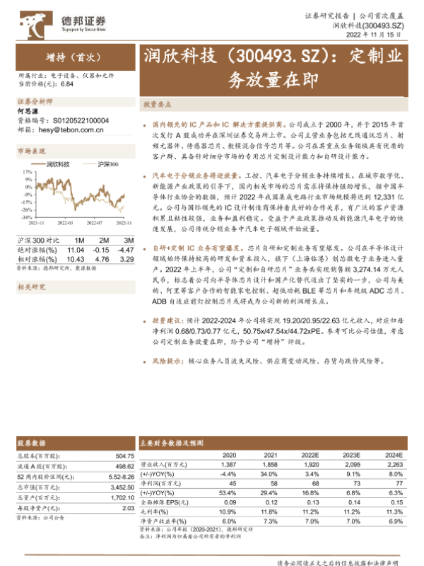IC产品 定制业务 汽车电子 润欣科技 自研芯片