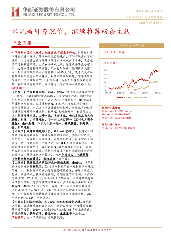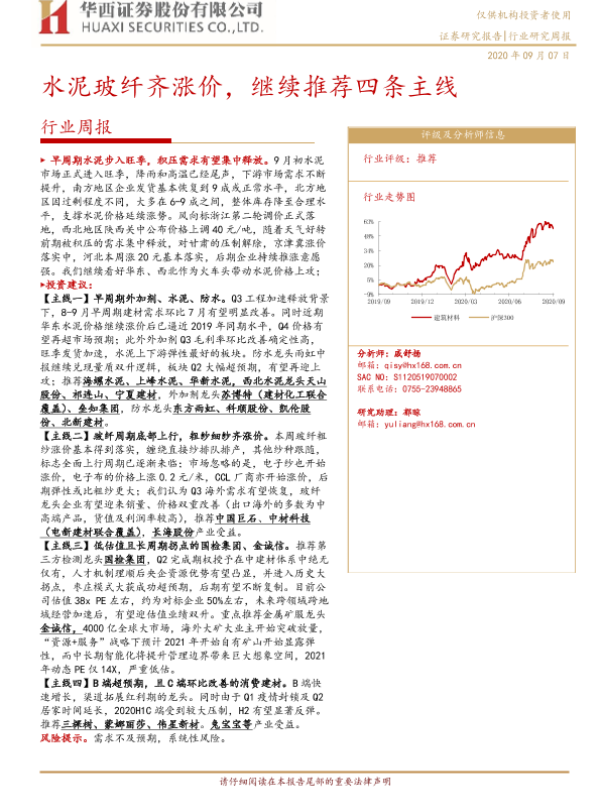 【华西证券】【20200907】建筑材料行业周报:水泥玻纤齐涨价,继续推荐四条主线-14页