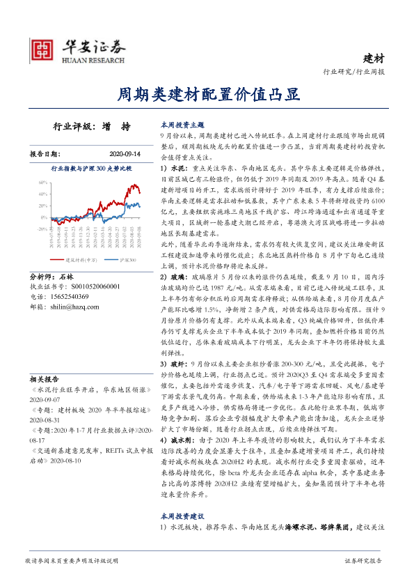 【华安证券】【20200914】建材行业周报:周期类建材配置价值凸显-15页