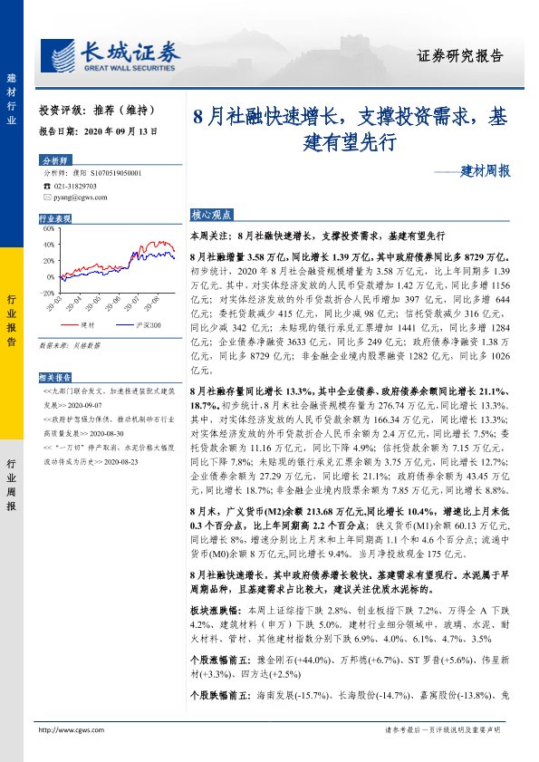 【长城证券】【20200913】8月社融快速增长,支撑投资需求,基建有望先行-18页